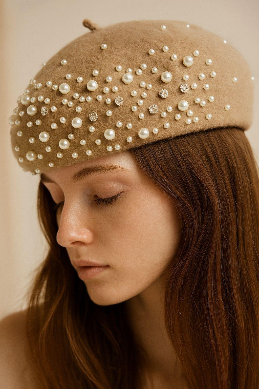 İNCİ İŞLEMELİ BERET ŞAPKA
